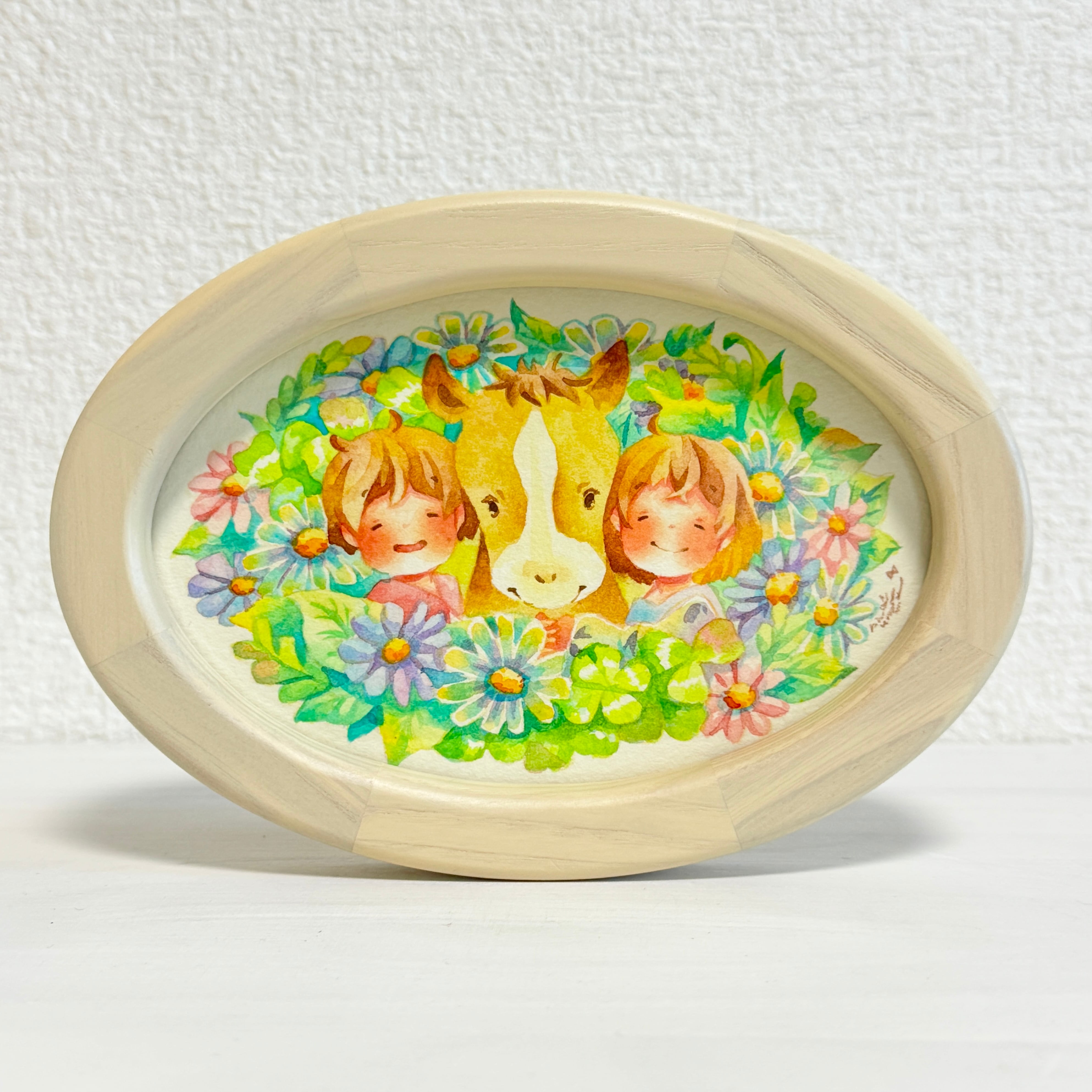 【ハガキサイズ楕円形原画】「みんな笑顔で」