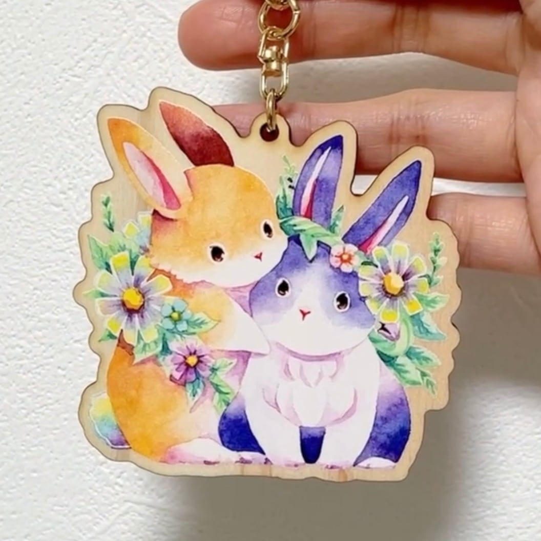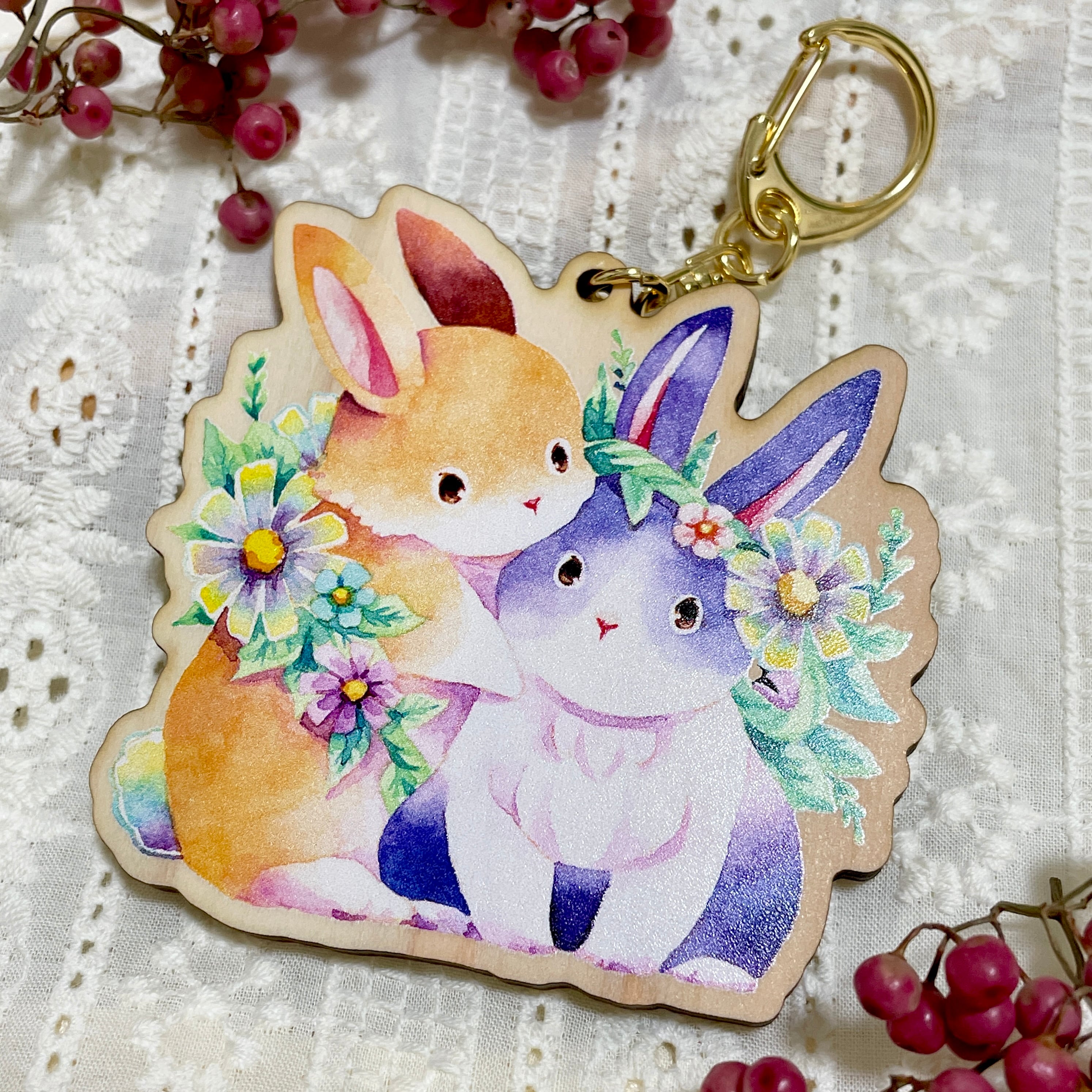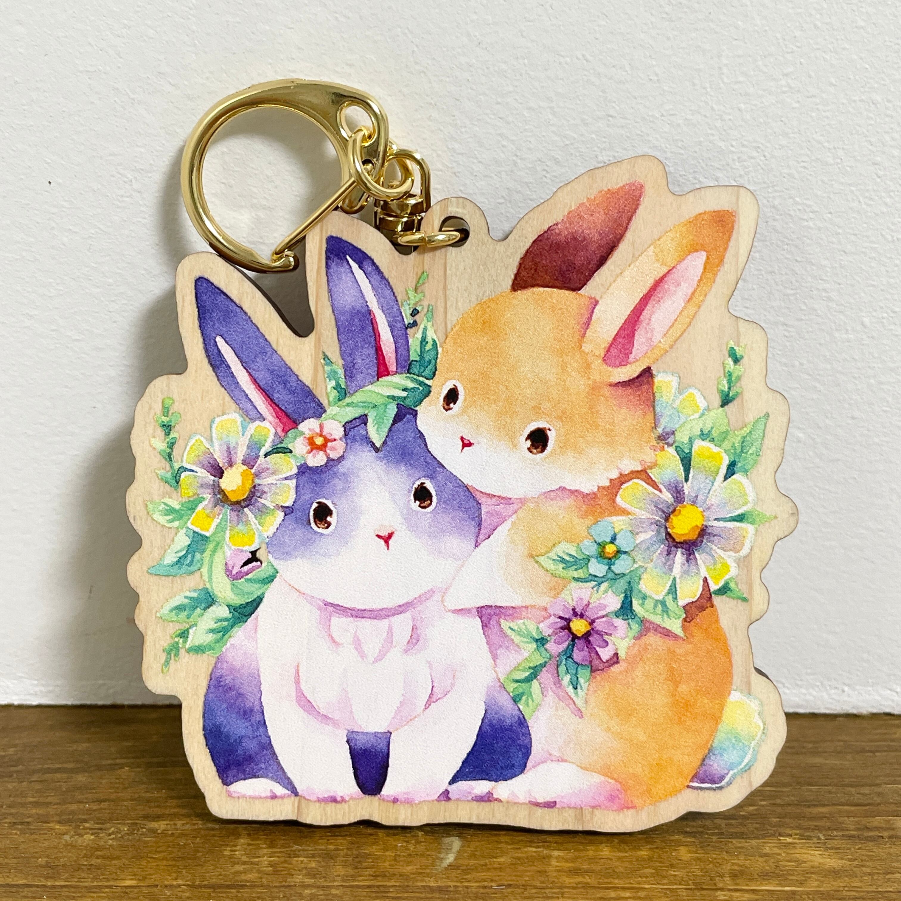 【木製キーホルダー(大/両面絵柄)】はなわっかうさぎ