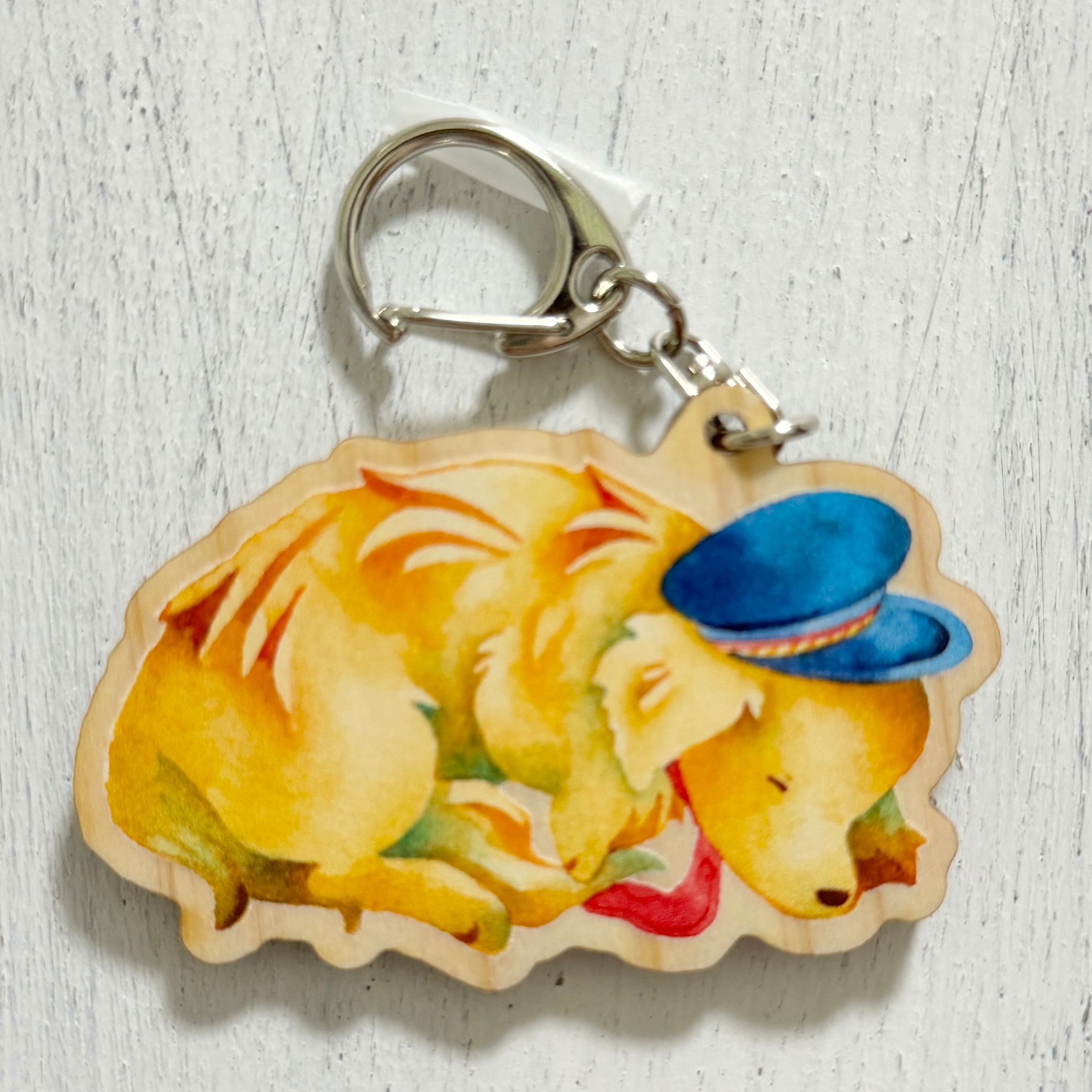 バスの車掌さん気分の帽子をかぶったダックスさん。現在バスは運休中。すやすやおやすみしています。